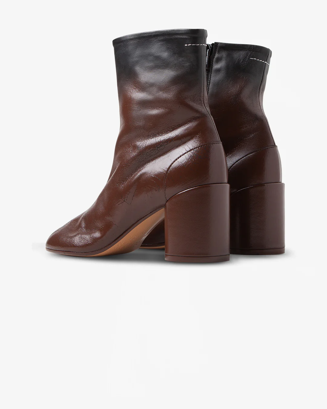 Elevate your wardrobe with the MM6 Maison Margiela Ankle Boot in Black/Sable, a sleek, minimalist silhouette with a contemporary edge. Crafted from premium leather, these ankle boots feature a refined pointed toe and subtle tonal details for a sophisticated, understated look. Designed for versatility, they pair effortlessly with tailored trousers, dresses, or denim, making them a modern wardrobe essential.
